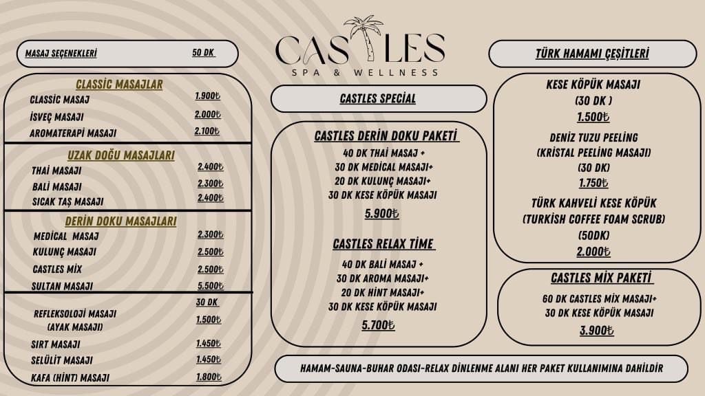 Castles Spa Premium, müşterilerimize en yüksek kalitede masaj ve spa hizmetleri sunma amacıyla kurulmuştur